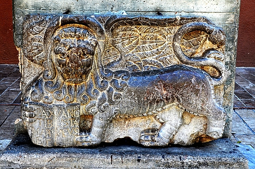 Above: The ubiquitous Venetian Lion, also on the Platia Sintagmatos, and a fountain with arabic inscription. Strolling through the narrow streets of this part of Nafplion you can find gems like this in many places. |