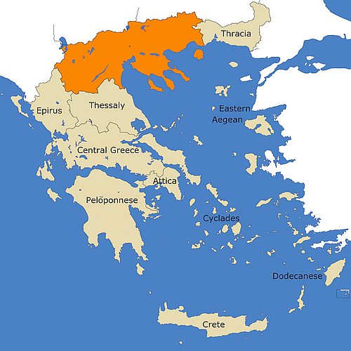 includes the Chalkidiki, Drama, Emathia, Florina, Grevena, Kastoria, Kavala, Kilkis, Kozani, Pella, Pieria, Serres,