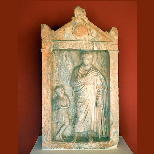 pediment. Always with a religious background, it is especially found as grave reliefs or shrines with statues in
