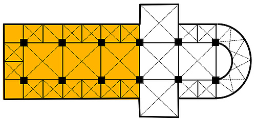 at the (usually western) end of the nave, opposite the church's main altar. Especially in early