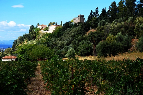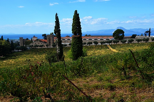 Behind the wineyards of the famous Achaia Clauss winery N. Kyparrisis excavated 12 Mycenaean chamber tombs in the 1930s, a work that was resumed by the University of Ioannina in the 1990s. Alas, during my visit in 2021 I could only find the remains of one chamber tomb (at least it looks like one) hidden between the trees and bushes. There could be more, but it will be difficult to find them. |