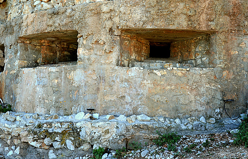 Left: A gun emplacement on the beach - remains of the Italian occupation in WW II.