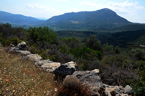 On tolerable dirt roads in the hills northeast of the acropolis of Mycenae. The area is seldom visited but full of Mycenaean chamber tombs and other remains, especially remains of a network of Mycenaean roads. Now and then there is some signage but seldom very clear. |