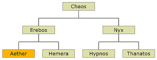 In Greek mythology the personification of the sky or the upper air breathed by the Olympian Gods; son of Erebos.