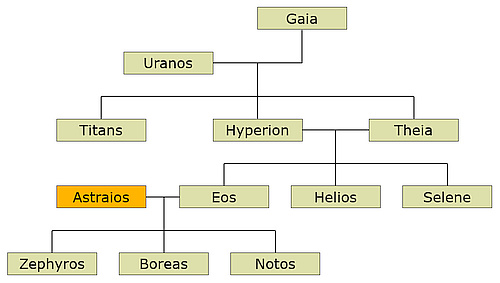 1) In Greek mythology husband of Eos, father of Boreas, Notos, and Zephyros.