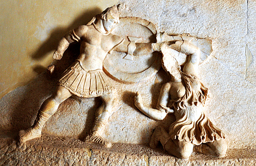 In the ensuing Trojan War Agamemnon fought bravely and killed several Trojans, but unlike Achilles in the Iliad he was not one of the main heroes. His role was more that of a commander. After the fall of Troy he received Kassandra, a daughter of Priam, as his prize and took her with him to Argolis. Meanwhile at Mycenae, Aigisthos had seduced Klytaimnestra during the absence of her husband, and during a welcoming feast killed Agamemnon. At the same occasion Klytaimnestra murdered Kassandra. These tragic events have inspired the tragic poets to various works.