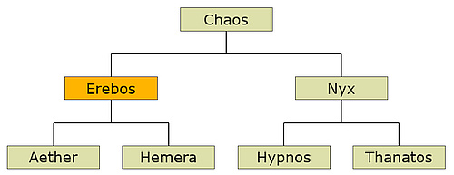The "rosy-fingered" Greek goddess of dawn that she brings by riding her chariot across the sky. She w as the daughter of Hyperion and Theia, sister of Helios and Selene. To Astraios she bore the winds Boreas, Notos and Zephyros. Aphrodite punished her for making love to her consort Ares by inflicting her with an amorous desire for mortals, and so she fell in love with Tithonos, Kephalos and Orion. - The Romans called her Aurora.
