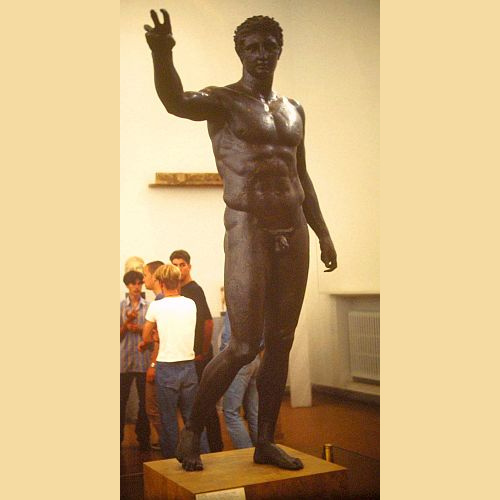 Euphranor of Corinth (fl. middle of the 4th century BC) was the only known Greek artist who excelled both as a sculptor and as a painter. The "Ephebos of Antikythera" (ca. 340 BC) is tentatively ascribed to him. However, no known existing statues could be ascribed to Euphranor with certainty, although Pliny the Elder provides a list of his works.