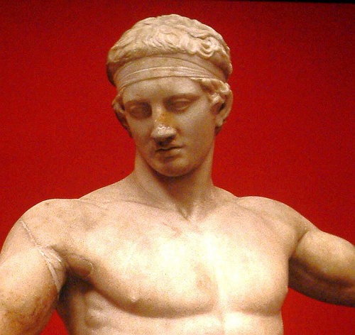 seen on depictions of victors at athletic games. But such head-bands could also be worn by women in ancient Greece to
